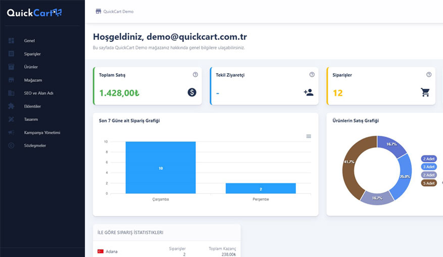 “Quick Cart, birden fazla mağazayı kolayca yönetmenizi ve Meta uyumlu reklamlarla büyümenizi sağlar. Doğru analizlerle başarınızı artırın.